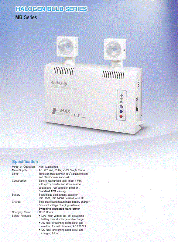 ไฟฉุกเฉินของทางบริษัทฯ ผ่านการออกแบบและคัดเลือกอุปกรณ์ที่มีคุณภาพสูงเข้ามาเป็นส่วนประกอบ ทำให้มีประสิทธิภาพสูงและสวยงามพร้อมที่จะเป็นเครื่องประดับภายในอาคาร หรือสถานที่ติดตั้งใช้งาน จากคุณภาพและประสิทธิภาพสูงของระบบไฟฉุกเฉิน ทำให้ผลิตภัณฑ์รุ่นต่างๆ ได้ผ่านการรับรองตามข้อกำหนดของระบบบริหารคุณภาพ ISO 9001:2000 และได้ผ่านการทดสอบตามมาตรฐานของสำนักงานมาตรฐานผลิตภัณฑ์อุตสาหกรรม กระทรวงอุตสาหกรรม เช่น มอก. 1102-2538, มอก. 1955-2542 และมาตรฐาน CE Mark (Germany) ดังนั้นมั่นใจได้ว่าระบบไฟฉุกเฉินสามารถอำนวยความสะดวกให้แก่ผู้ใช้งาน โดยเฉพาะในขณะที่เกิดเหตุฉุกเฉินขัดข้องต่างๆ เช่น กระแสไฟฟ้าขัดข้อง หรือ เกิดเหตุอัคคีภัย